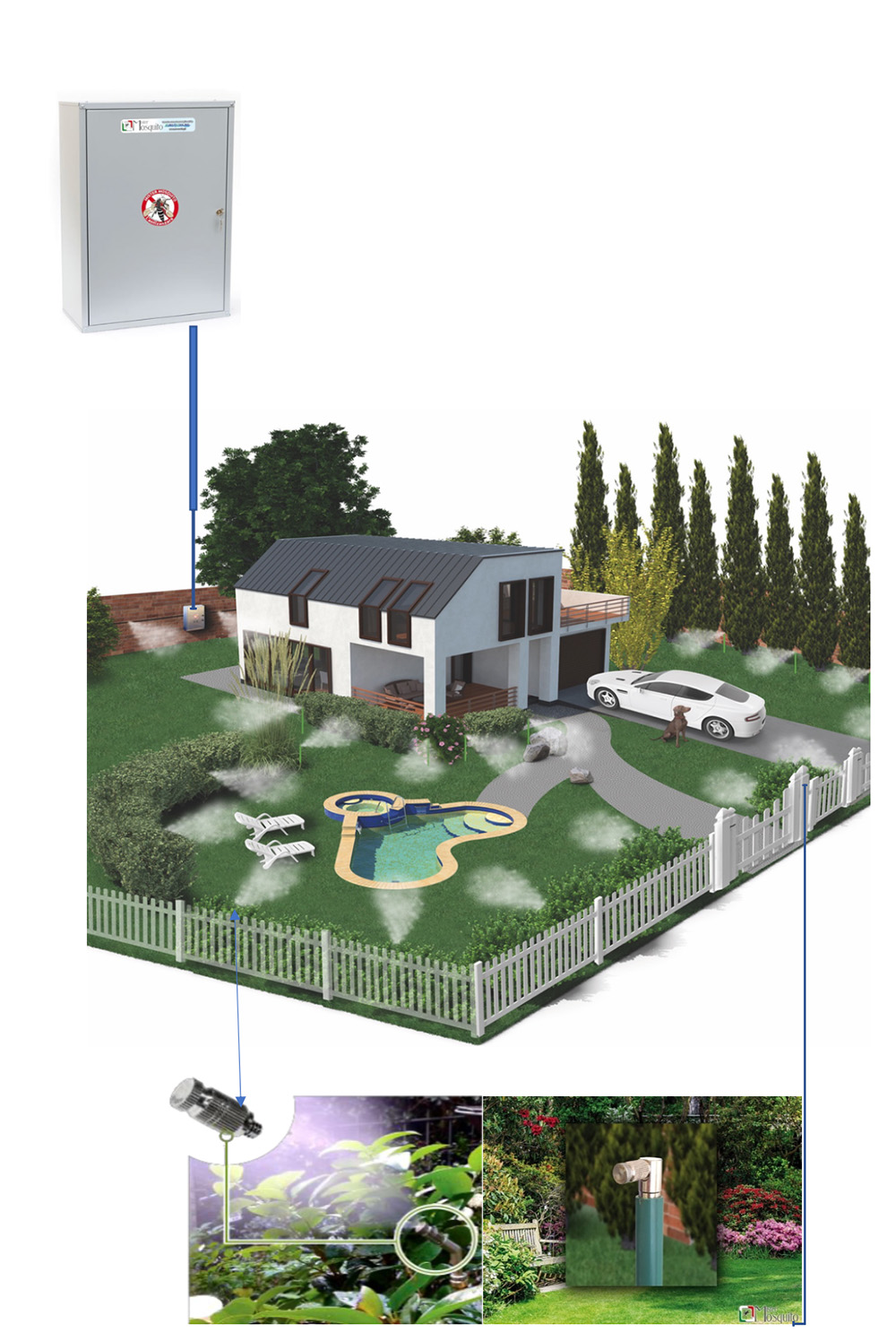 - I nebulizzatori si occupano di distribuire prodotti specifici contro la zanzara tigre, che non costituiscono fonte inquinante per il resto dell’ambiente, compresa l’acqua della piscina.